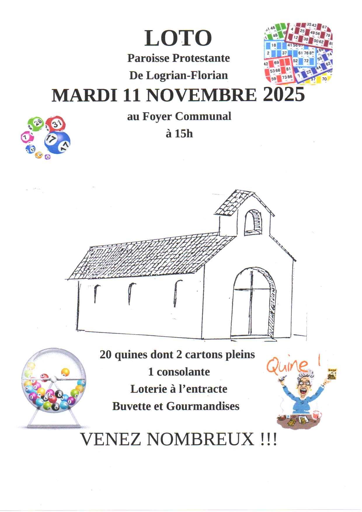 Mardi 11 novembre à 15h00 : Loto au foyer communal de Logrian. affiche jointe