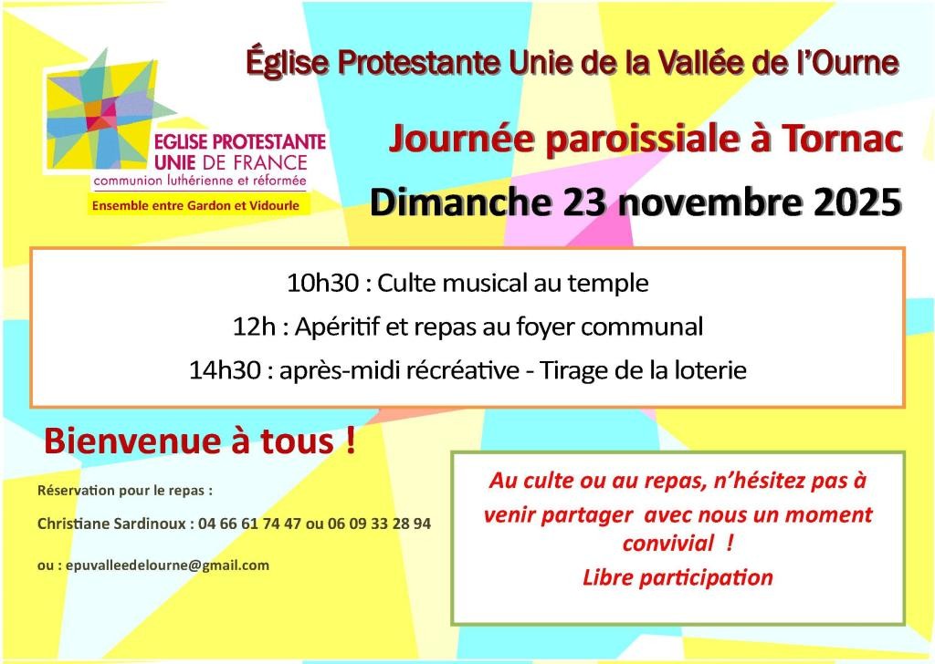 Dimanche 23 novembre : Journée paroissiale de la Vallée de l’Ourne à Tornac. affiche jointe